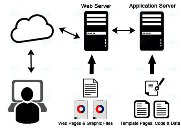 - Web Server receives the request; if business logic processing is needed, forwards it to the Application Server.