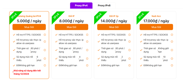 Một số gói dịch vụ của nhà TMProxy