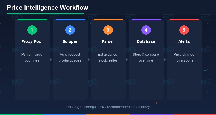 常用工具: Scrapy + 轮换代理、Puppeteer、Playwright,或Prisync、Competera等SaaS方案。