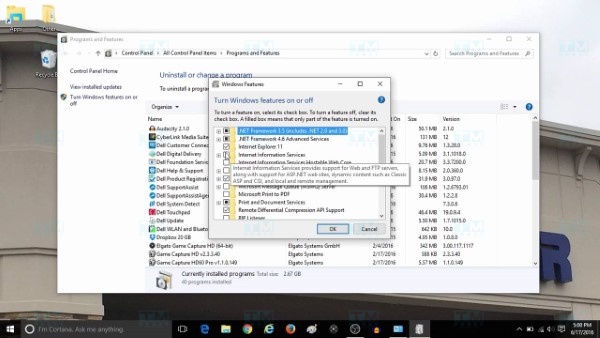 - Click "Turn Windows features on or off".