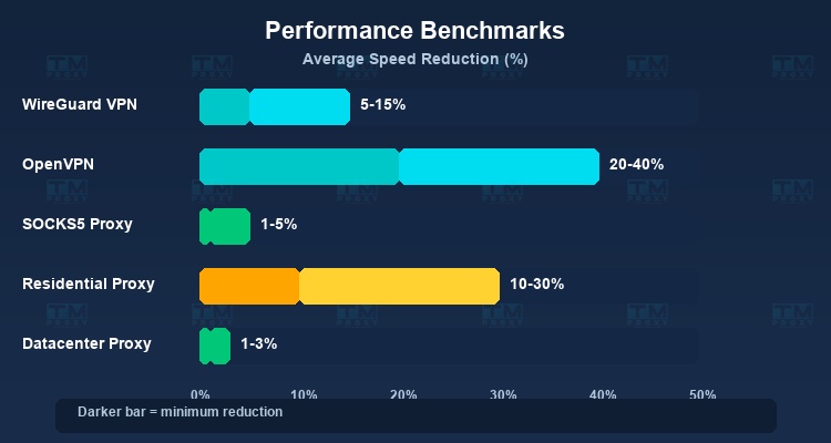 | SOCKS5 Proxy | 1-5% | 1-5ms | Almost no speed impact |