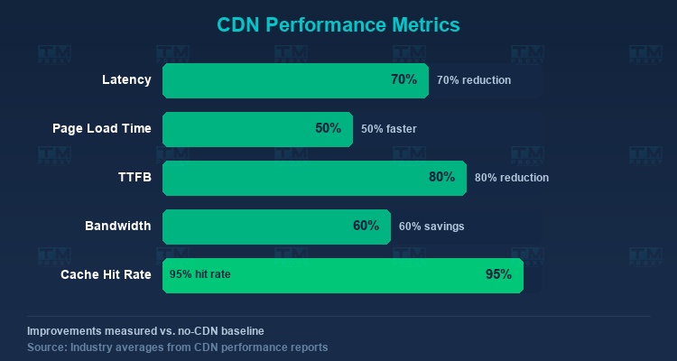 Here are average performance metrics when using a CDN, based on data from multiple industry studies and reports: